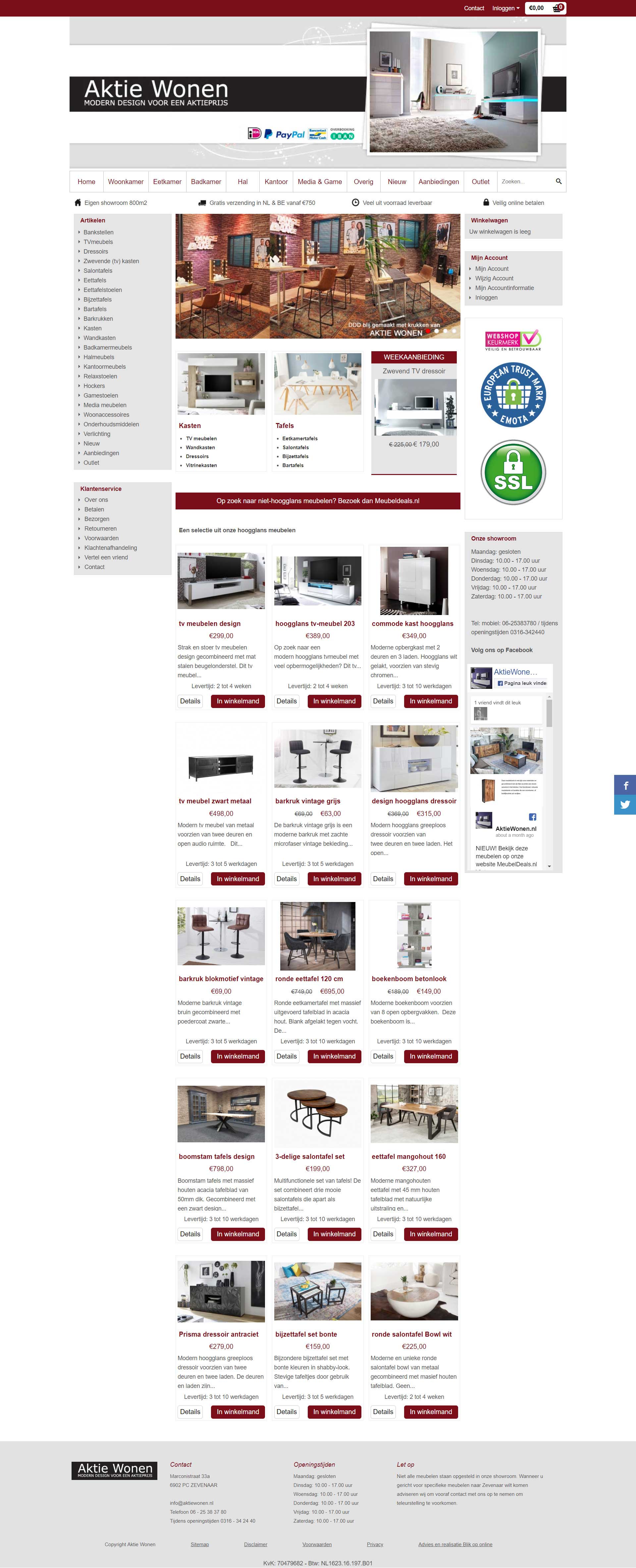 Blik op online deed het advies en de uiteindelijke realisatie. Het resultaat is Aktiewonen.nl geworden. Ook na livegang van de website zijn Aktie Wonen en Blik op online nauw samen blijven werken. Zo pakken we samen de online marketing en de zoekmachine optimalisatie op. Ook is samen de website Meubeldeals.nl opgezet.